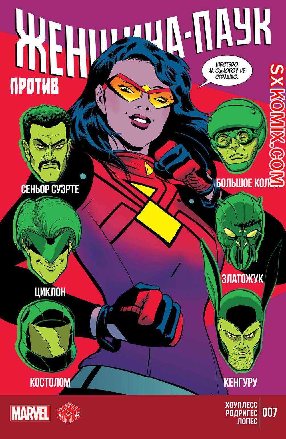 Комикс Женщина-Паук. Spider-Woman. Часть 7 Джессика Дрю была агентом организации ЩИТ, КЛИНОК, Мстителем и не только. Но ничто не смогло подготовить её к мультивселенскому безумию, имя которому Паучий Мир. Назревает война и каждый персонаж с силами паука стал её целью. Но Джессика Дрю не любит быть целью.