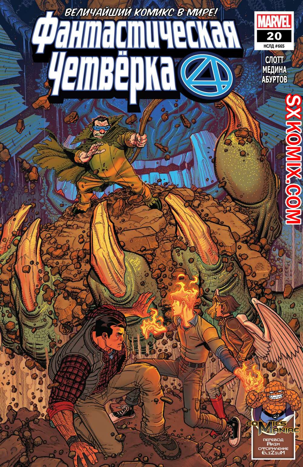 Комикс Фантастическая Четвёрка. Fantastic Four. Часть 20 Рид, Сью и дети из Фонда Будущего всё ещё утеряны, и доподлинно неизвестно, живы или нет. И пока Джонни до сих пор надеется их отыскать, Бен уже давным давно сложил руки и теперь думает, как ему жить дальше. И тут, откуда ни возьмись, - сигнал. Заветная цифра 4 в небе. Неужели величайшая в мире команда вернулась в полном составе.