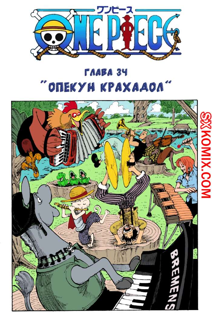 Комикс Ван Пис. One Piece.. Часть 34. Одним прекрасным днем, семнадцатилетний Монки Д. Луффи исполнил заветную мечту детства — отправился в море. Его цель — ни много, ни мало стать новым Королём Пиратов. За достаточно короткий срок юному капитану удаётся собрать команду, состоящую из не менее амбициозных искателей приключений.