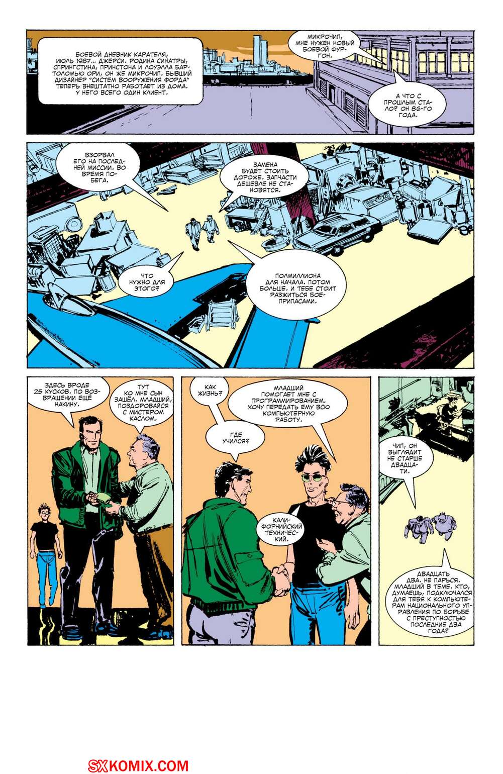Комикс Каратель. Punisher. Часть 4 Фрэнк берётся за распространителей кокаина. Один из местных притонов и лидер Нью-Йоркской наркоячейки - его первые цели. Маскировка, огнестрел, базука, боевые навыки и сила воли - всё это поможет Фрэнку в его нелёгком деле.