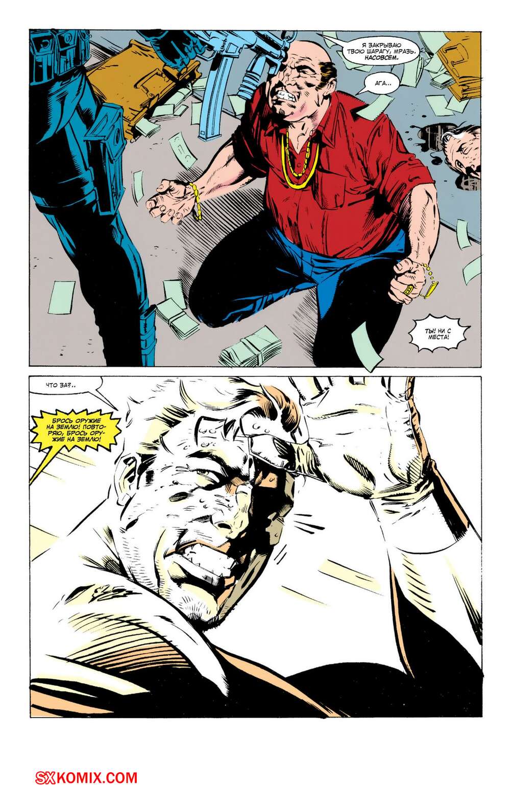 Комикс Каратель. Punisher. Часть 74 Фрэнк берётся за распространителей кокаина. Один из местных притонов и лидер Нью-Йоркской наркоячейки - его первые цели. Маскировка, огнестрел, базука, боевые навыки и сила воли - всё это поможет Фрэнку в его нелёгком деле.