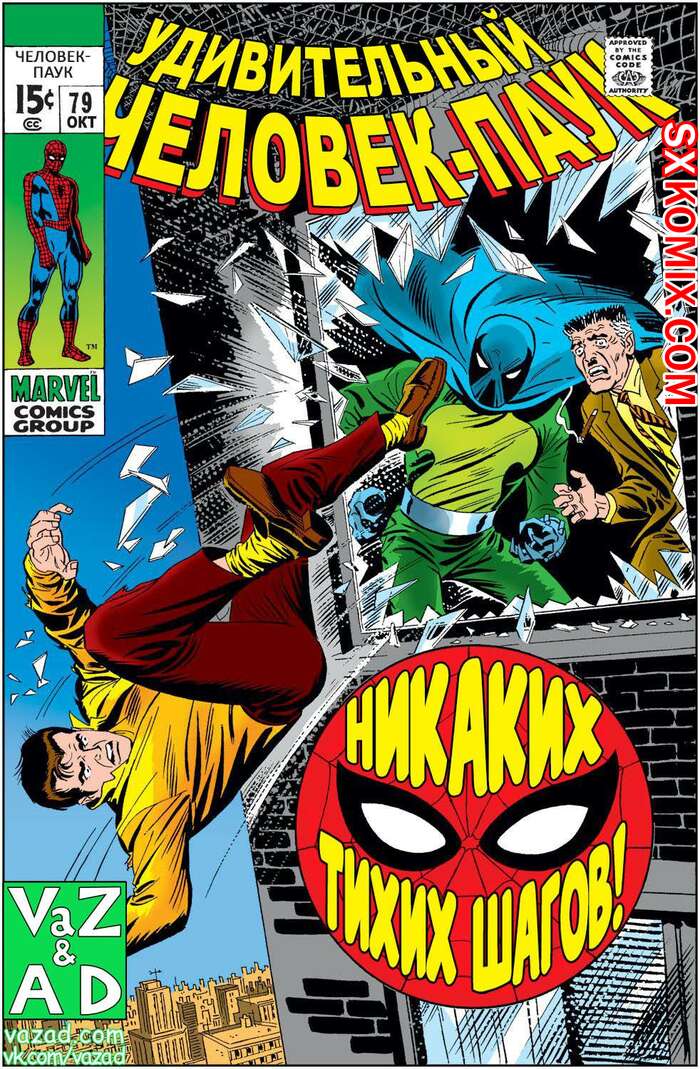Комикс Удивительный ЧеловекПаук. Amazing SpiderMan. Часть 79. Питер Паркер столнулся с бродягой, но тот, сам того не желая, выбросил Паркера в окно. Поэтому герою пришлось надеть костюм Паука и вступить в сражение с Бродягой.