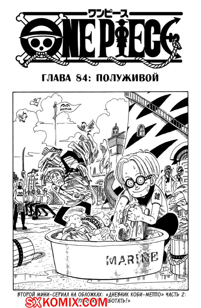 Комикс Ван Пис. One Piece.. Часть 84. Одним прекрасным днем, семнадцатилетний Монки Д. Луффи исполнил заветную мечту детства — отправился в море. Его цель — ни много, ни мало стать новым Королём Пиратов. За достаточно короткий срок юному капитану удаётся собрать команду, состоящую из не менее амбициозных искателей приключений.