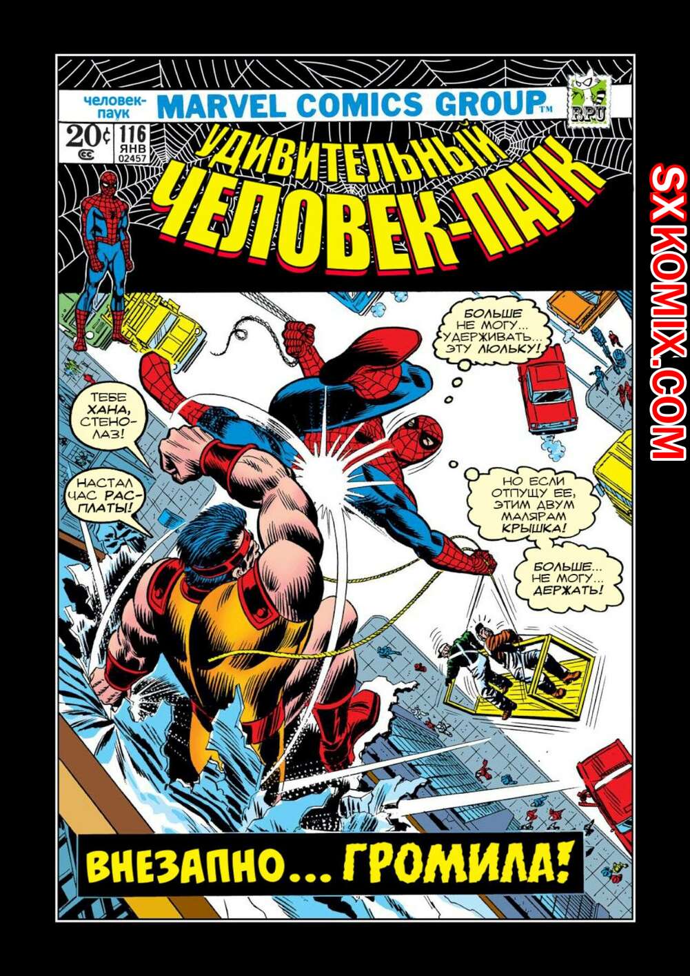 Комикс Удивительный ЧеловекПаук. Amazing SpiderMan. Часть 116. Паучок спокойно летал по городу, но внезапно на него набросился огромный парень с большими силами по имени Громилла. Между ними началась схватка, не герою удалось одержать победу.