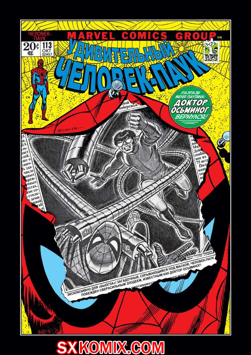 Комикс Удивительный ЧеловекПаук. Amazing SpiderMan. Часть 113. Доктор Осьминог вернулся и у них с Паучком началось мощное сражение, в результате которой герой потерял маску. Он решил одолжить маску в магазине с костюмами супергероев, чтобы остановить злодея.