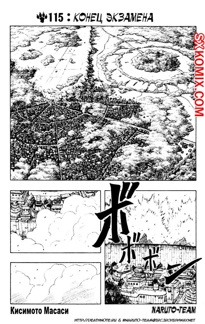 Комикс Наруто. Naruto. Часть 115. На арене среди зрителей оказались предатели, которые организовали атаку на селение. Бой Саске пришлось срочно остановить и всем теперь нужен оборонять селение от врагов.