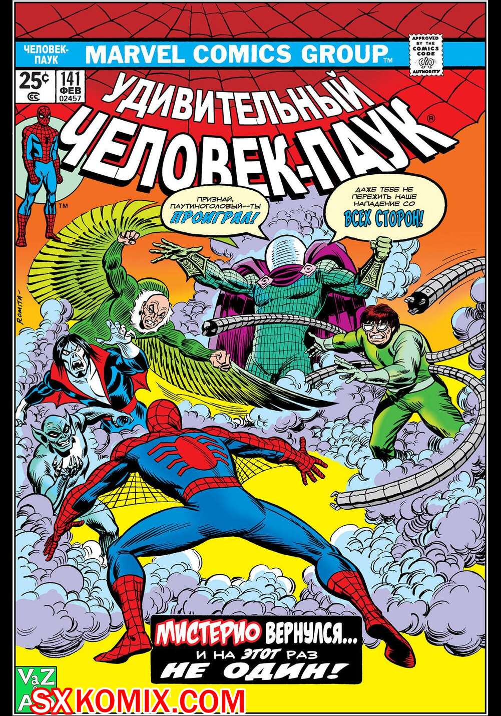 Комикс Удивительный ЧеловекПаук. Amazing SpiderMan. Часть 141. Человек Паук спокойно летал по городу, но внезапно его чутье дало знак. Стали происходить странные вещи и возле Паучка объявился Мистерио, который нанес герой сильный урон.