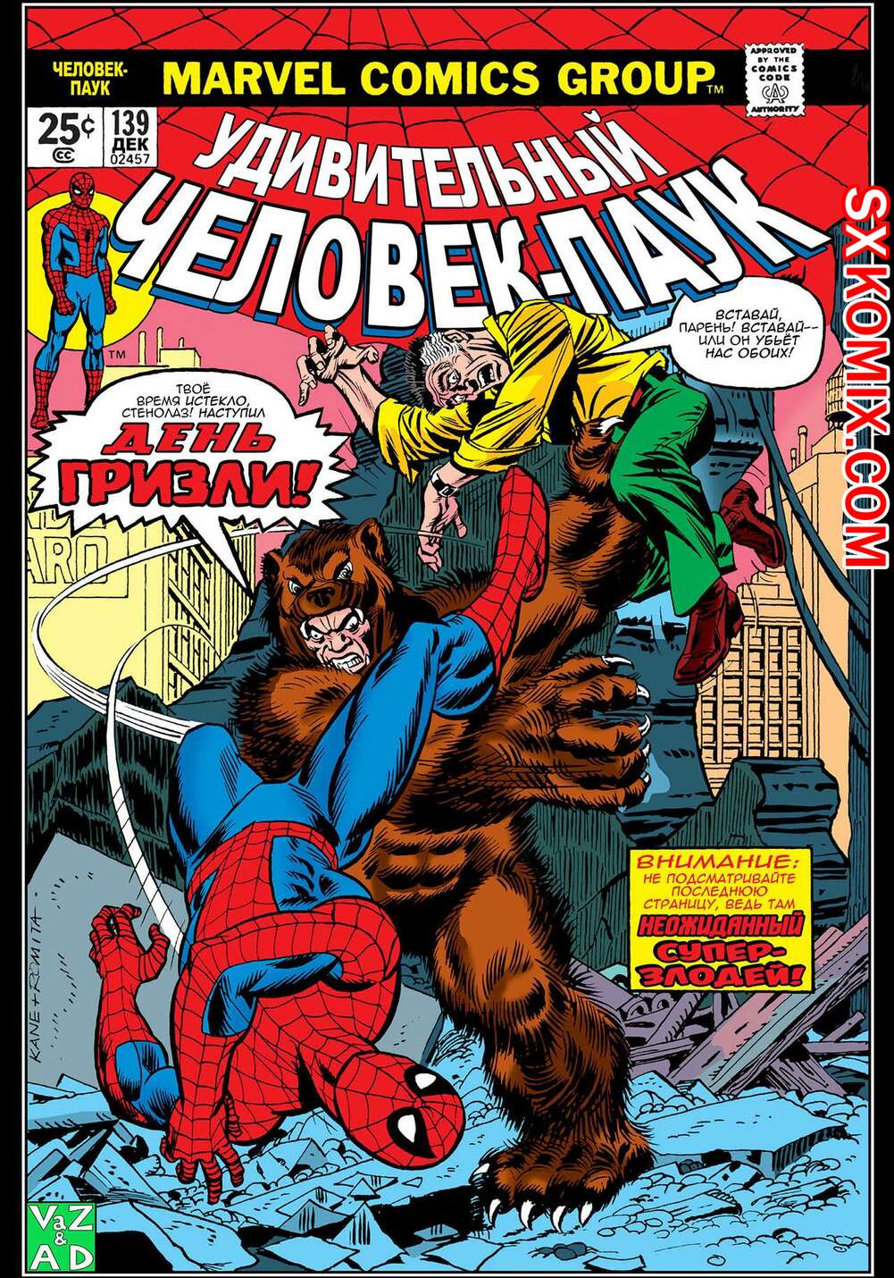 Комикс Удивительный ЧеловекПаук. Amazing SpiderMan. Часть 139. Гризли вернулся в город и первым делом напал на редакцию Дейли Бьюгл, чтобы отомстить Джеймсону за все. Он бы прикончил усатого редактора, но в офисе вовремя появился Паучок.