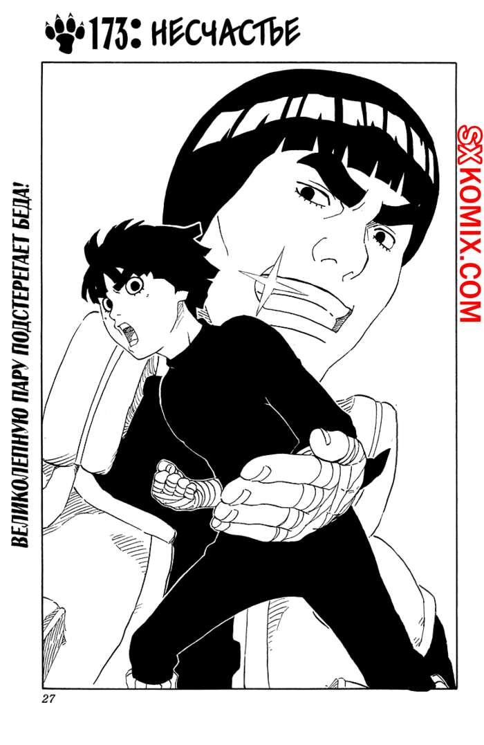 Комикс Наруто. Naruto. Часть 173. Ли продолжает восстанавливаться после тяжелой травмы и Цунаде сама решила его осмотреть. Закончив осмотр, она сообщила парню о том, что ему придется забыть о карьере синоби.