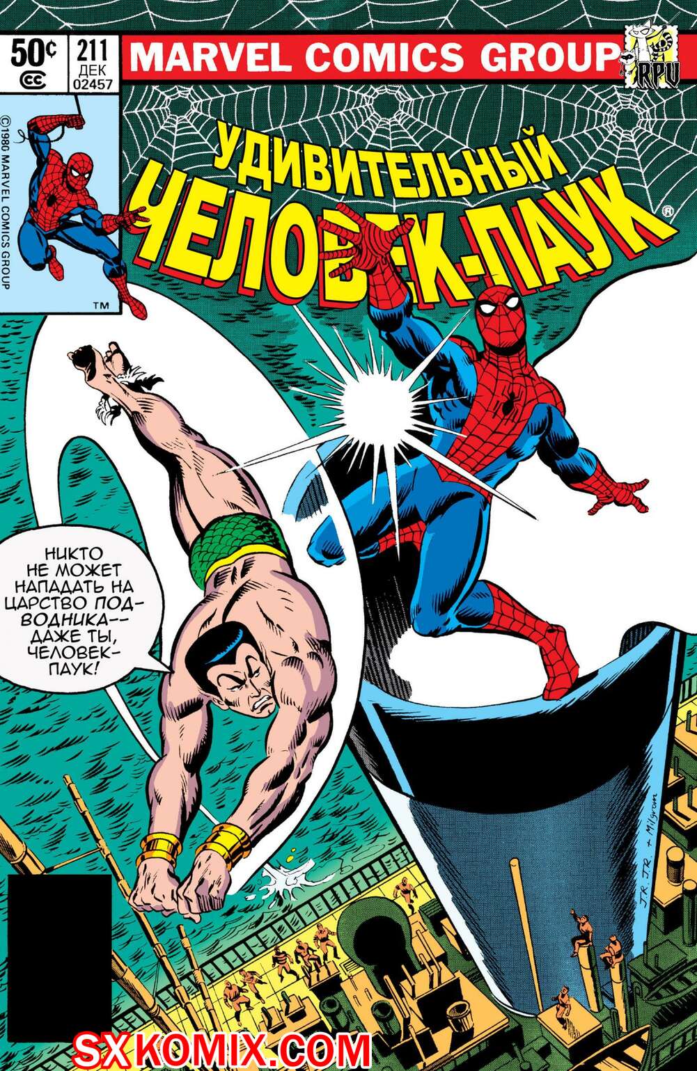 Комикс Удивительный ЧеловекПаук. Amazing SpiderMan. Часть 211. Человек Паук узнает, что в порту творится что-то неладное и скорее отправляется туда. Там объявляется морской правитель, который нападает на Человека Паука, но герою удается успокоить нападавшего.