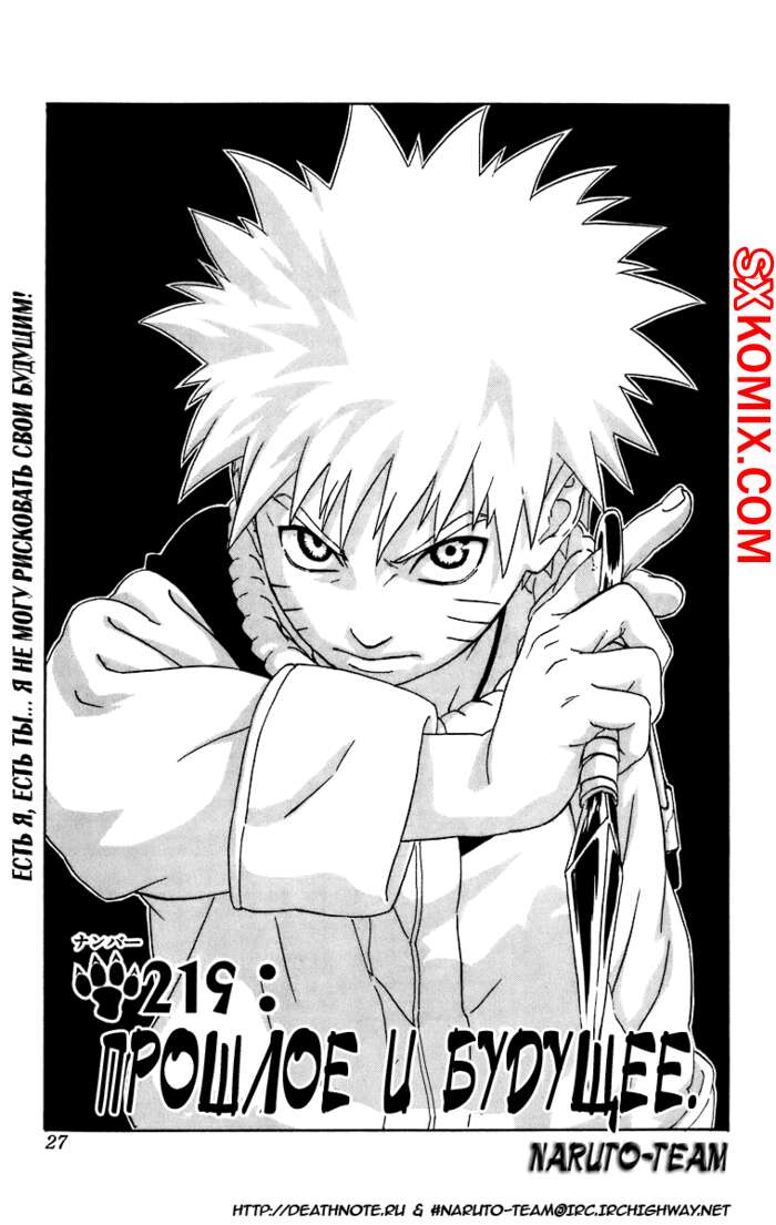 Комикс Наруто. Naruto. Часть 219. Наруто пришел в ярость от слов Саске, поэтому набросился на него и стал избивать. Они вспомнили свою прошлую драку, после чего Саске нанес мощный удар, который далеко откинул Наруто.