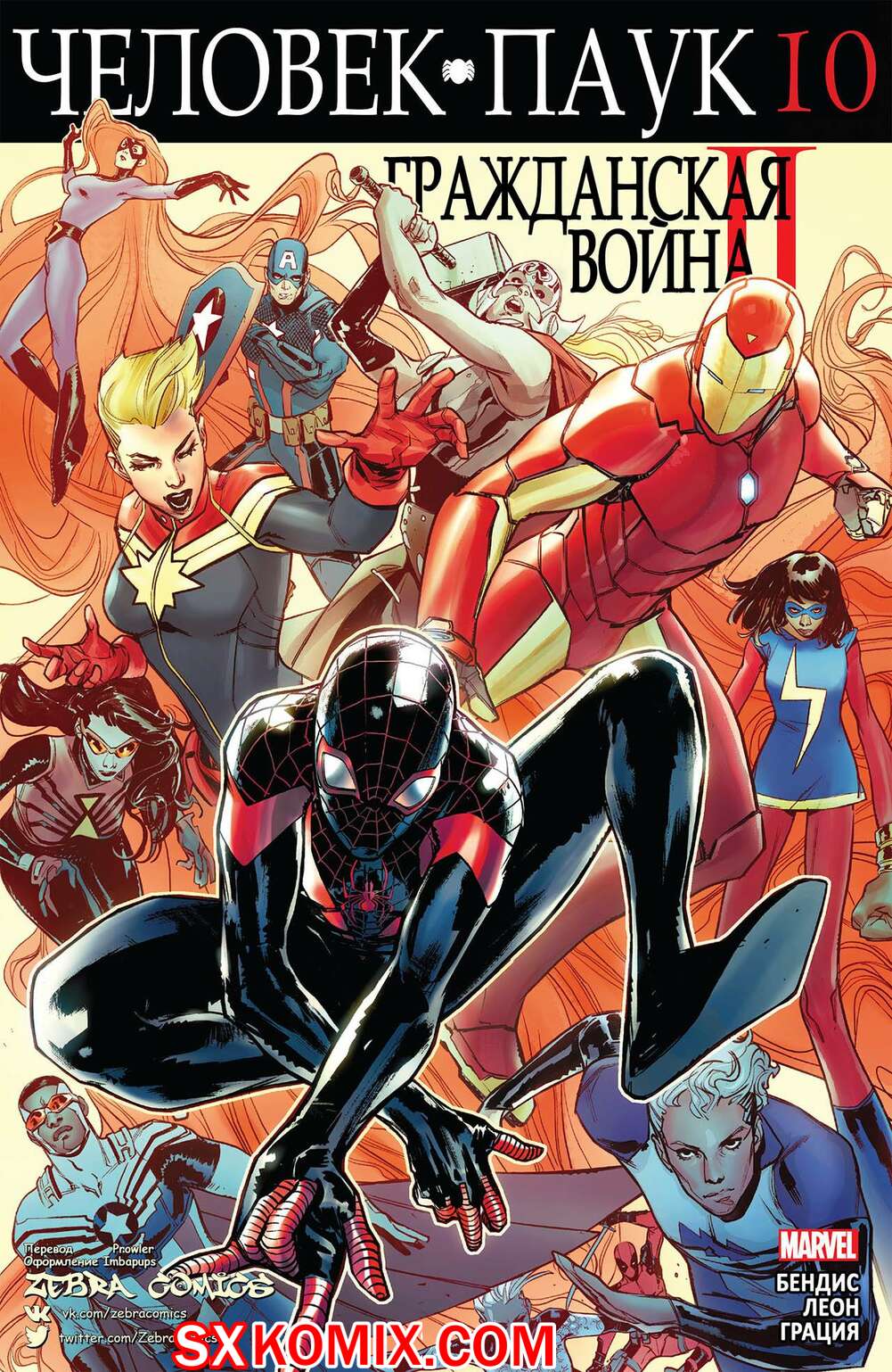 Комикс Человек-Паук. Spider-Man. Тайные Войны. Часть 10. Ганке вернулся в комнату и обнаружил там Майлза в слезах. Туда пришли другие его друзья и парень стал рассказывать о своем путешествии в Вашингтон.