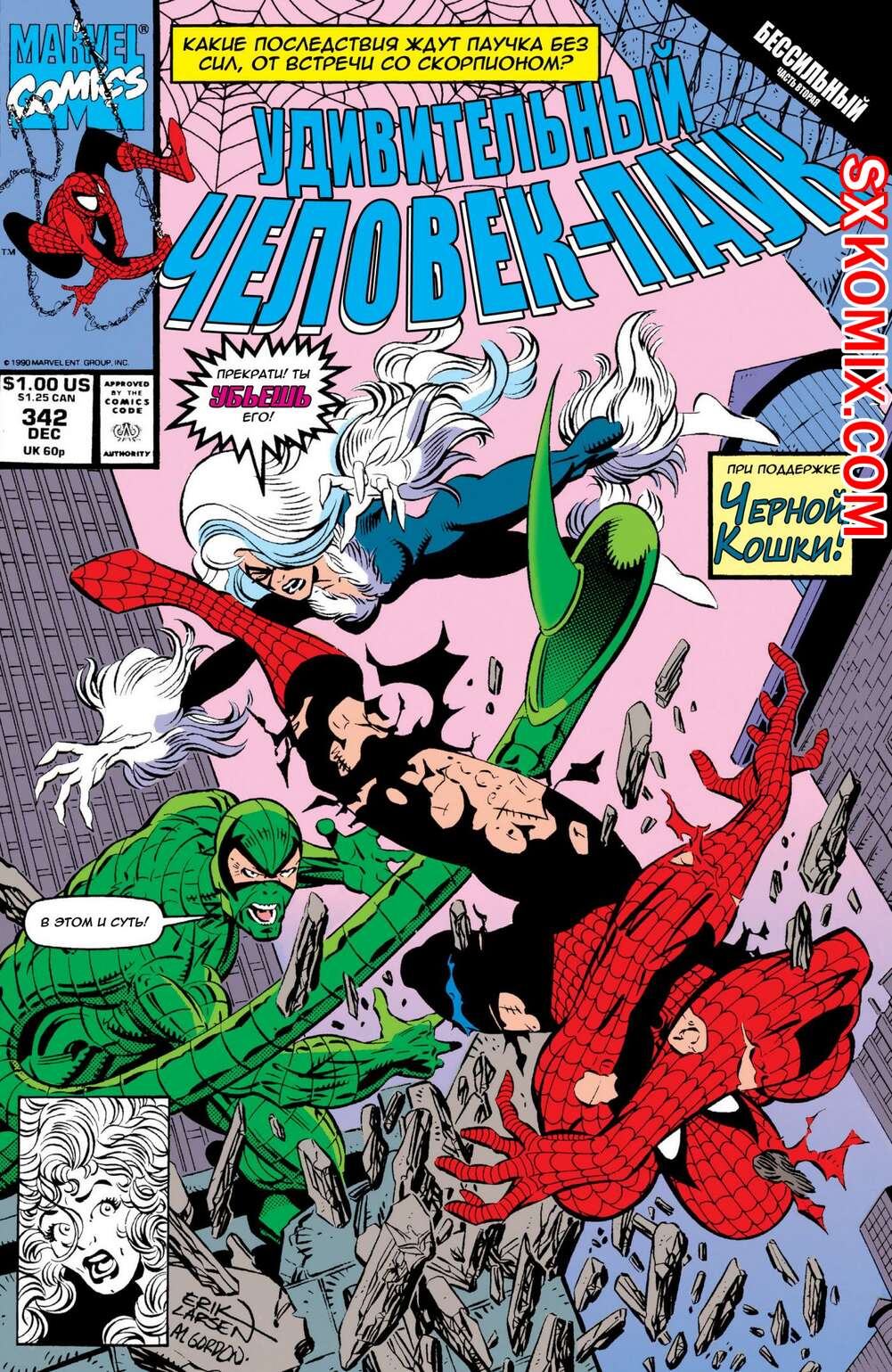 Комикс Удивительный ЧеловекПаук. Amazing SpiderMan. Часть 342. Питер Паркер пытается привыкнуть к своей обычной жизни, но внезапно на него нападает Скорпион. Паучку везет и к нему на помощь приходит Женщина Кошка.