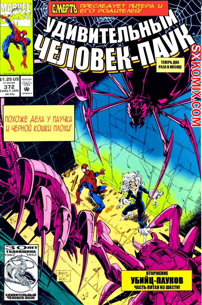 Комикс Удивительный ЧеловекПаук. Amazing SpiderMan. Часть 372. Во время полета по городу на Человека Паука и Черную Кошку нападает огромный робот паук. теперь у героев большие проблемы.