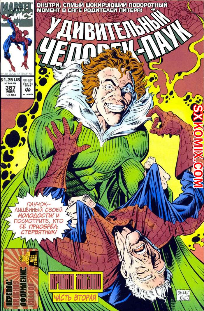 Комикс Удивительный ЧеловекПаук. Amazing SpiderMan. Часть 387. Стервятник использует прибор, с помощью которого он высасывает молодость героя и сам становится молод, а Паук стареет.